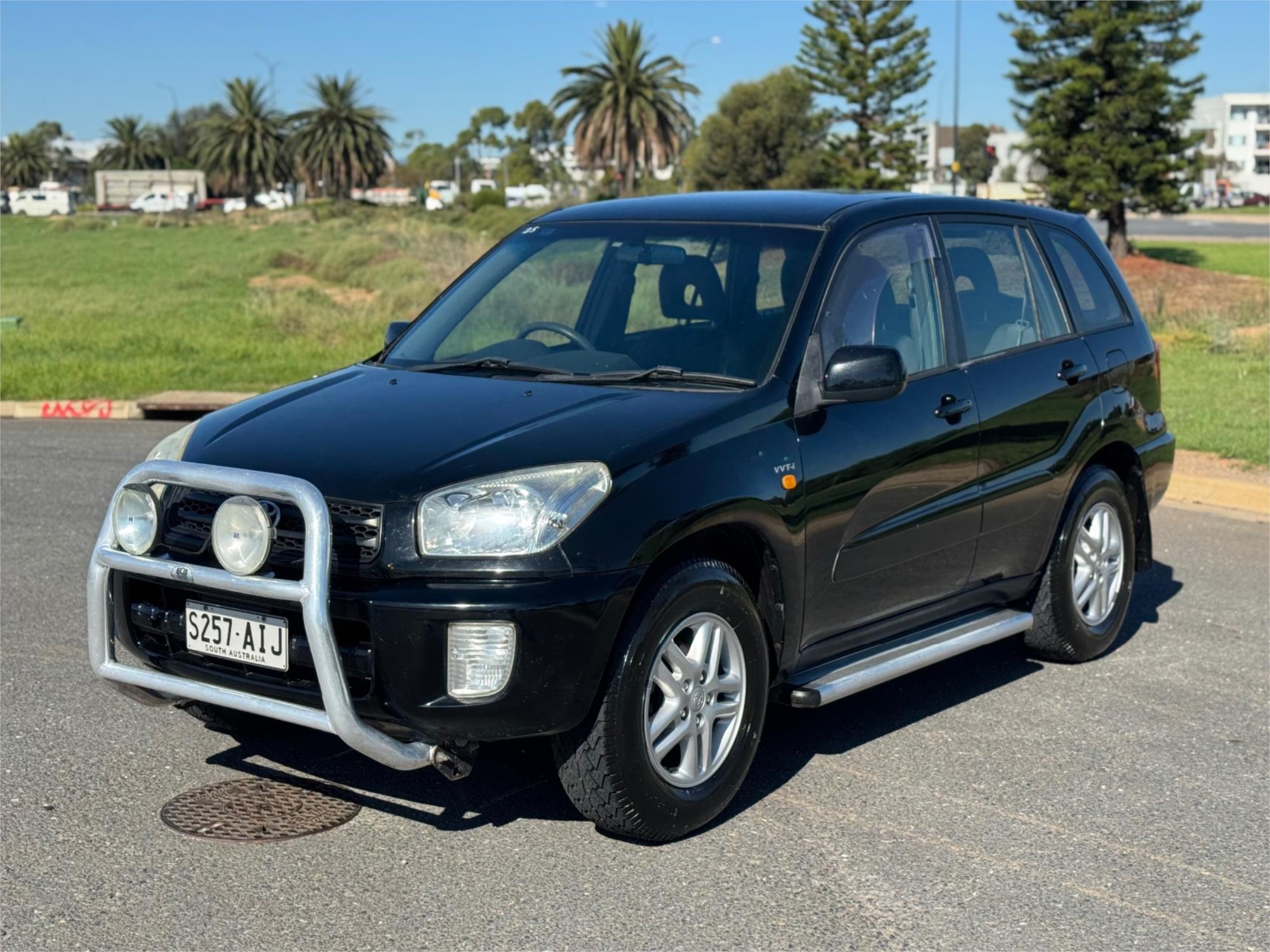 This RAV4 comes equipped with all the features you need for a comfortable and convenient ride. From adjustable steering column to power windows and remote central locking, this SUV has everything you need for a smooth drive. The black exterior and interior make this RAV4 look sleek and stylish on the road.
