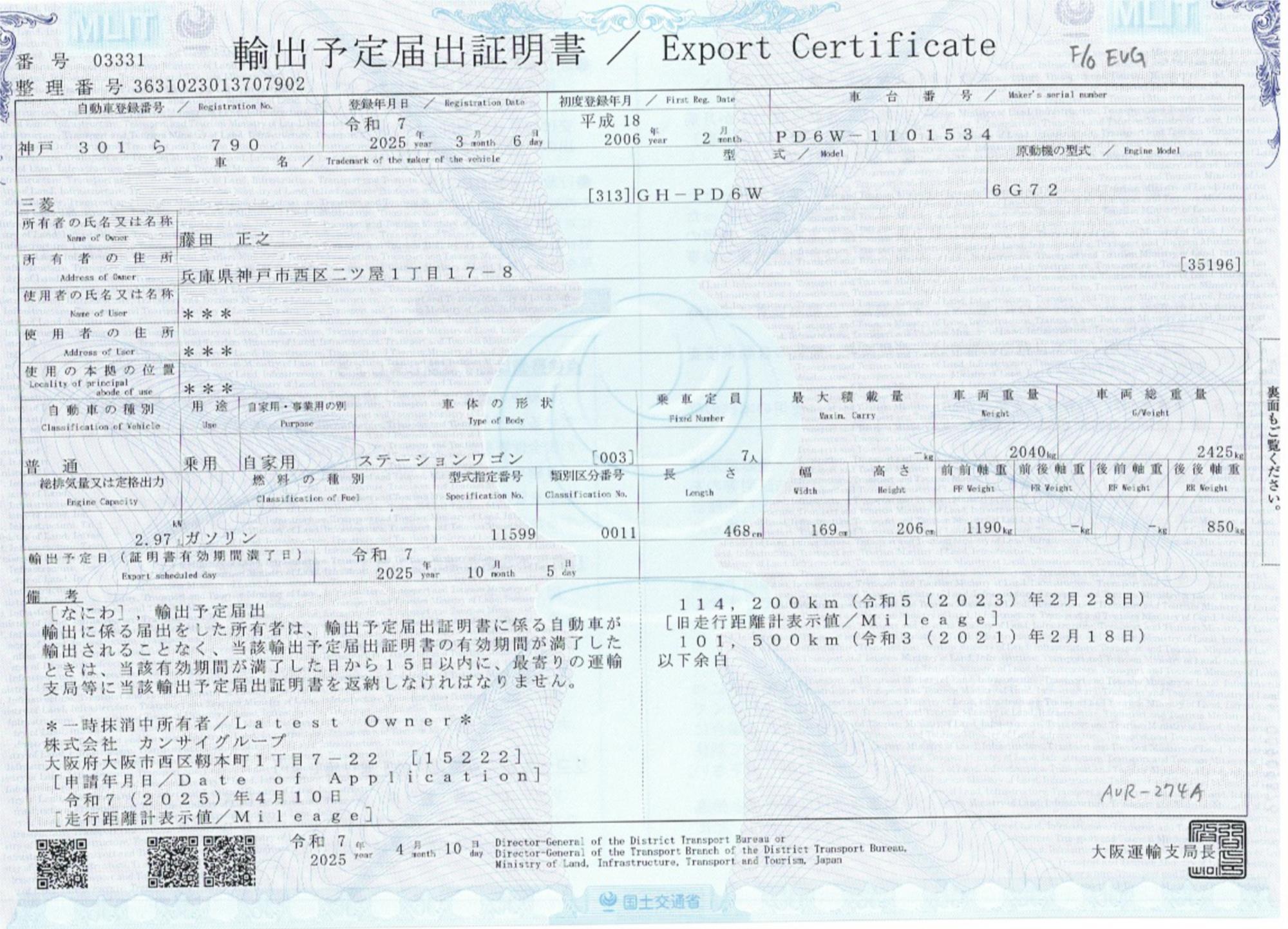 Genuine mileage with auction report & export docs