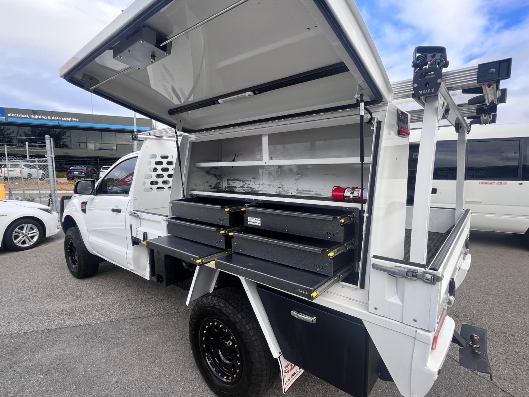 2020 Ford Ranger PX MkIII MY20.75 XL Cab Chassis Single Cab 2dr Spts Auto 6sp 4x4 1313kg 3.2DT with awseome bull body twin tool boxes & rack set up!